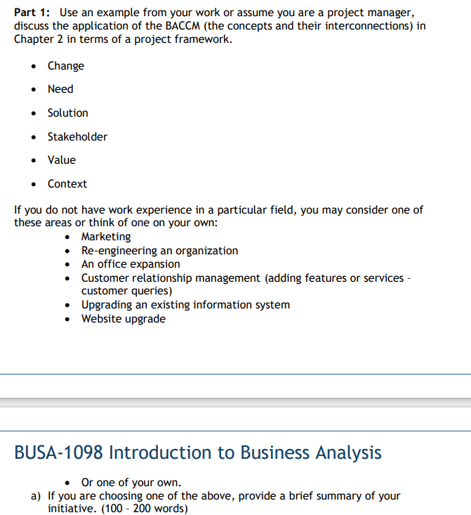 Solved Part 1 Use An Example From Your Work Or Assume You Chegg Com